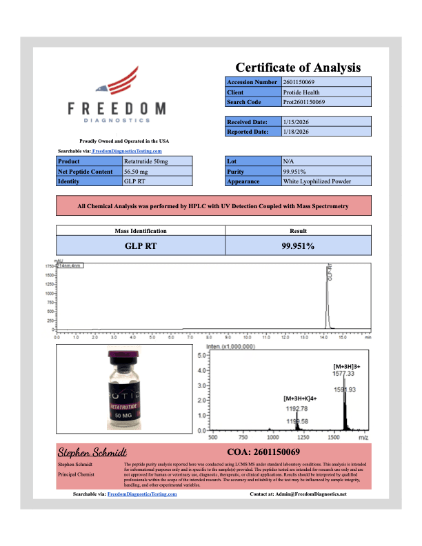 Products sold by Protide Health are for laboratory research purposes only and are not intended for human consumption, medical use, or veterinary use.